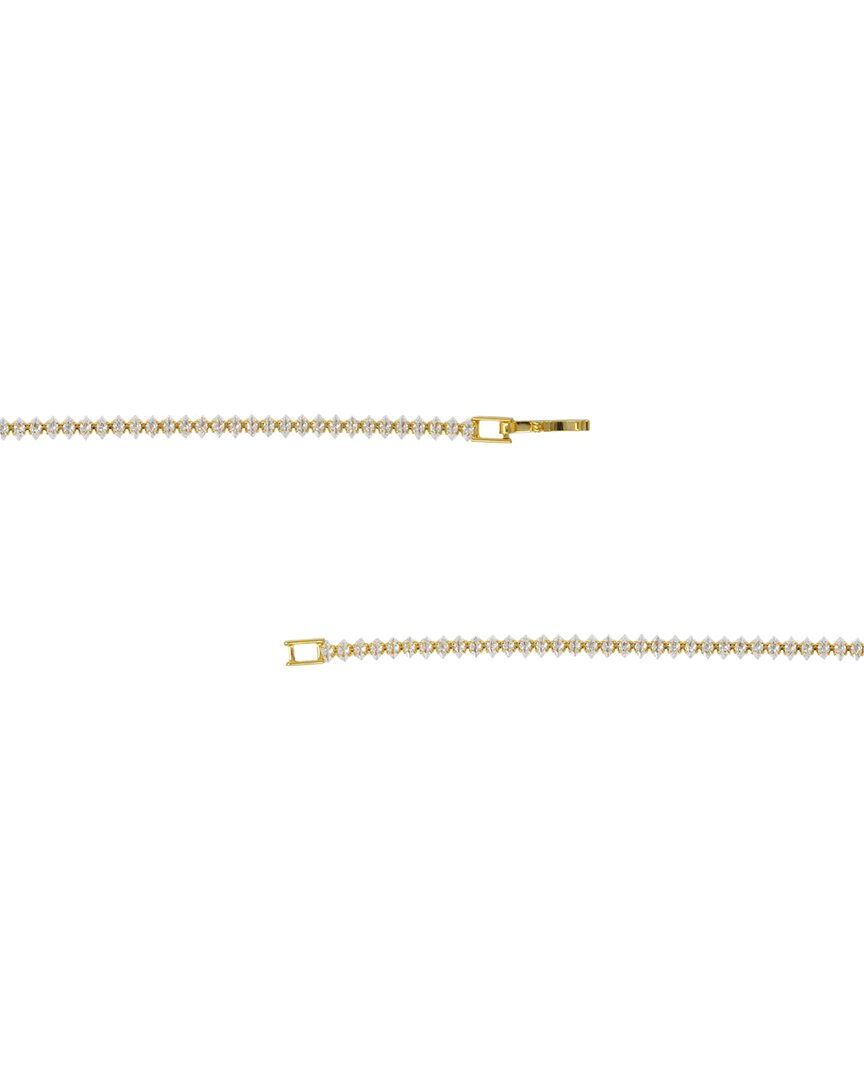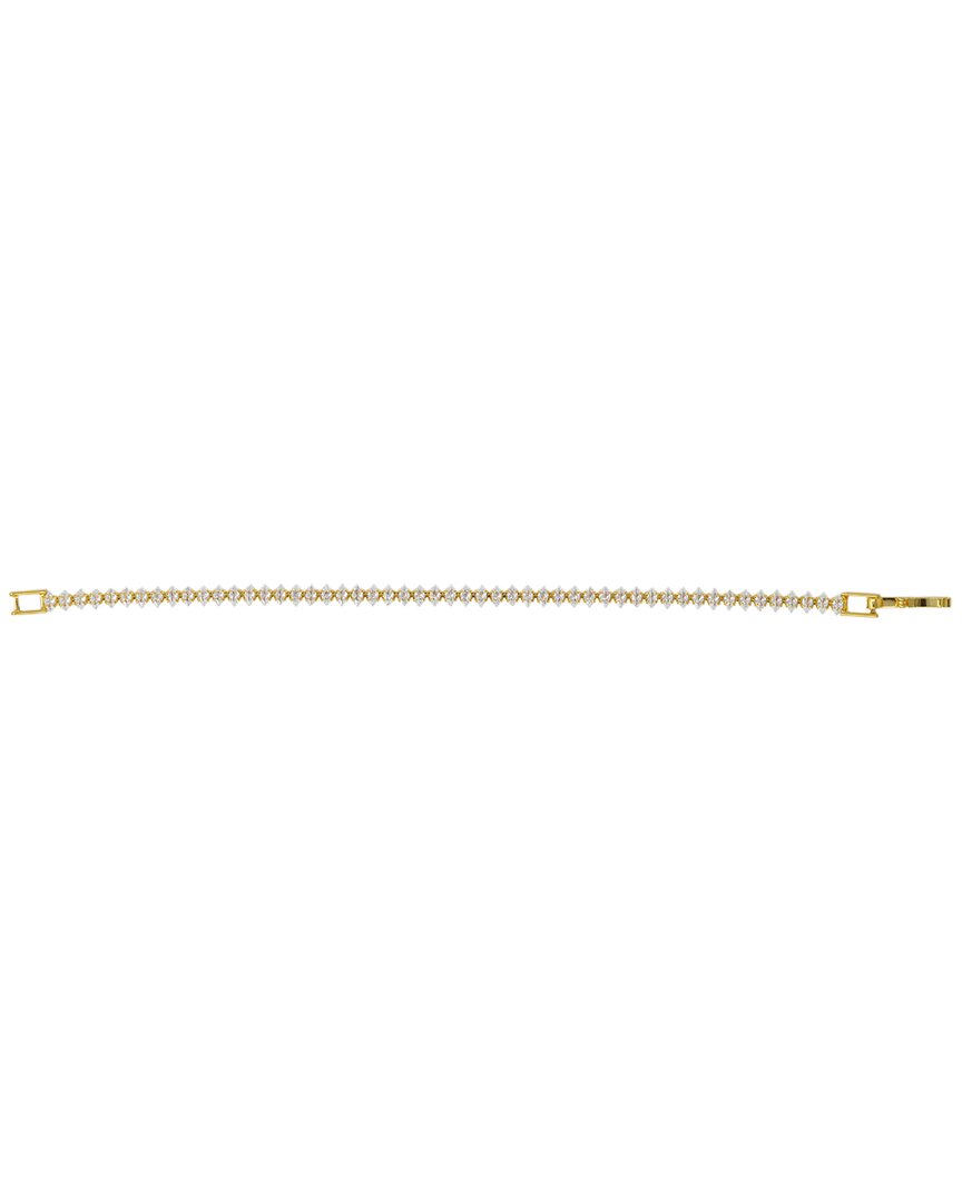 Crafted from 14-karat yellow gold plated brass featuring cubic zirconia stones. Bracelet measures approximately 6.25 inches, secured with a foldover clasp.