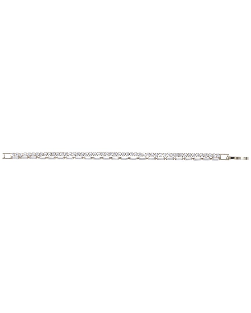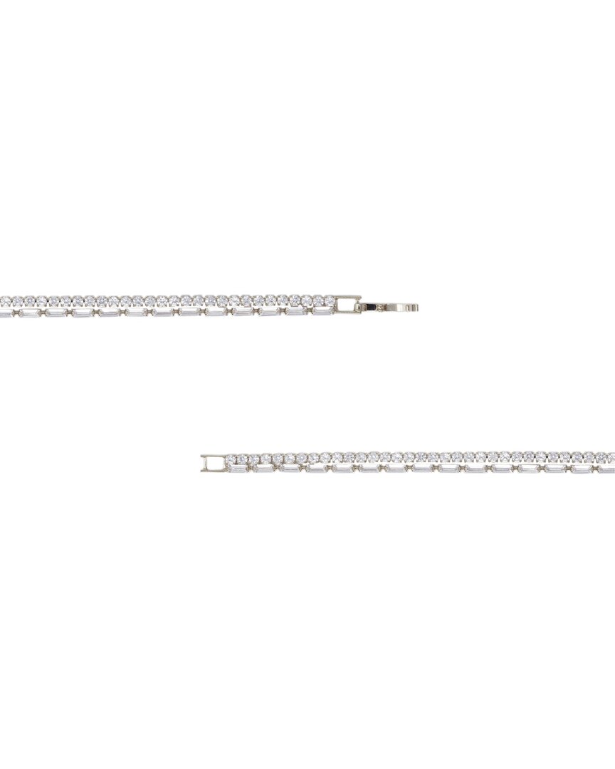 Crafted in 14-karat white gold-plated brass, adorned with cubic zirconia stones, approximately 6.25 inches long with foldover clasp.