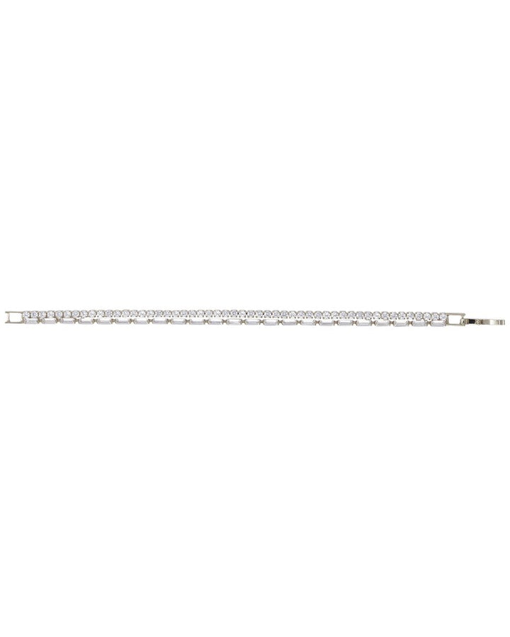 This Fuel 14K Plated CZ Tennis Bracelet by Cloverpost is a dazzling display of refined glamour. Sparkling cubic zirconia stones are meticulously set in 14-karat white gold-plated brass, creating a timeless piece that pairs beautifully with evening wear or everyday ensembles. Measuring approximately 6.25 inches and secured with a foldover clasp, it’s both elegant and comfortable.