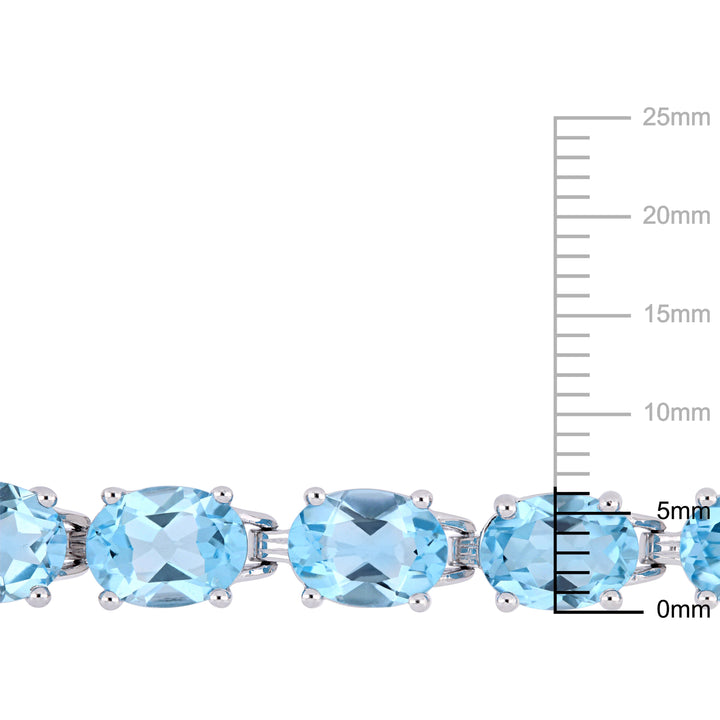 Crafted in sterling silver with 19 oval-cut prong-set sky blue topaz gemstones (8x6mm). Measures 7.25 inches with a box clasp.