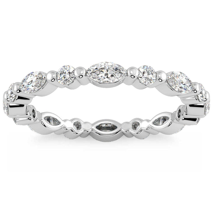 1Ct Marquise & Round Diamond Eternity Wedding Stackable Ring 14k Gold Lab Grown