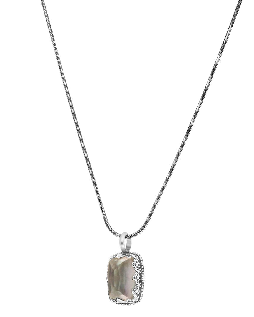 Hand-crafted from .925 sterling silver with mother-of-pearl and rock crystal accents.