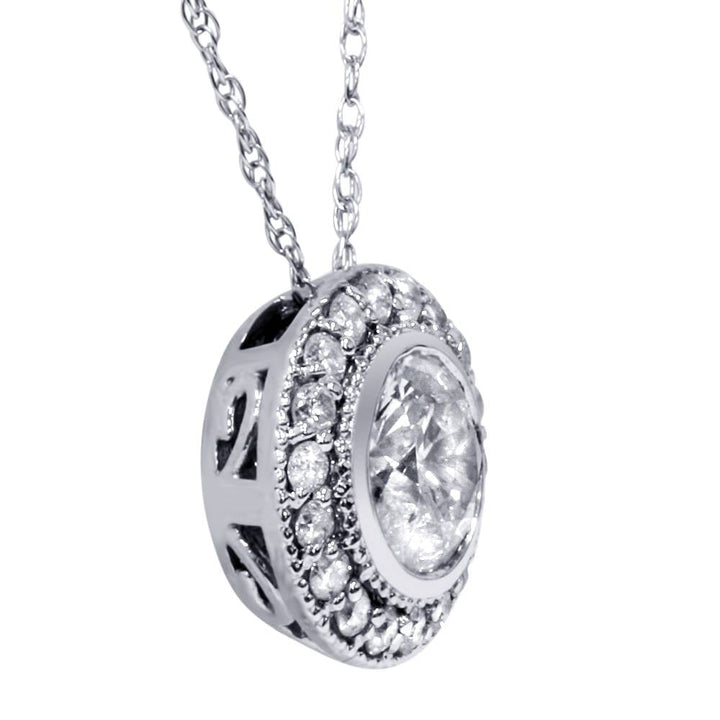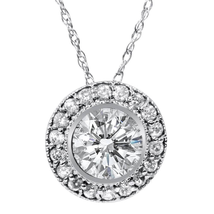 1ct Vintage Diamond Solitaire Halo Pendant 14K White Gold