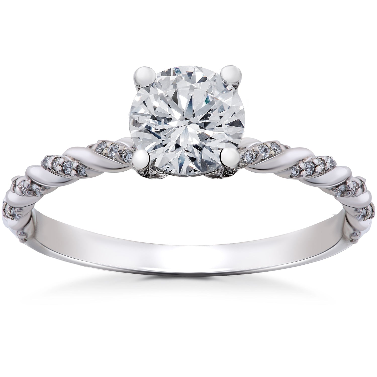 7/8 ct Lab Grown Round Eco Friendly Diamond Mia Engagement Ring 14k White Gold