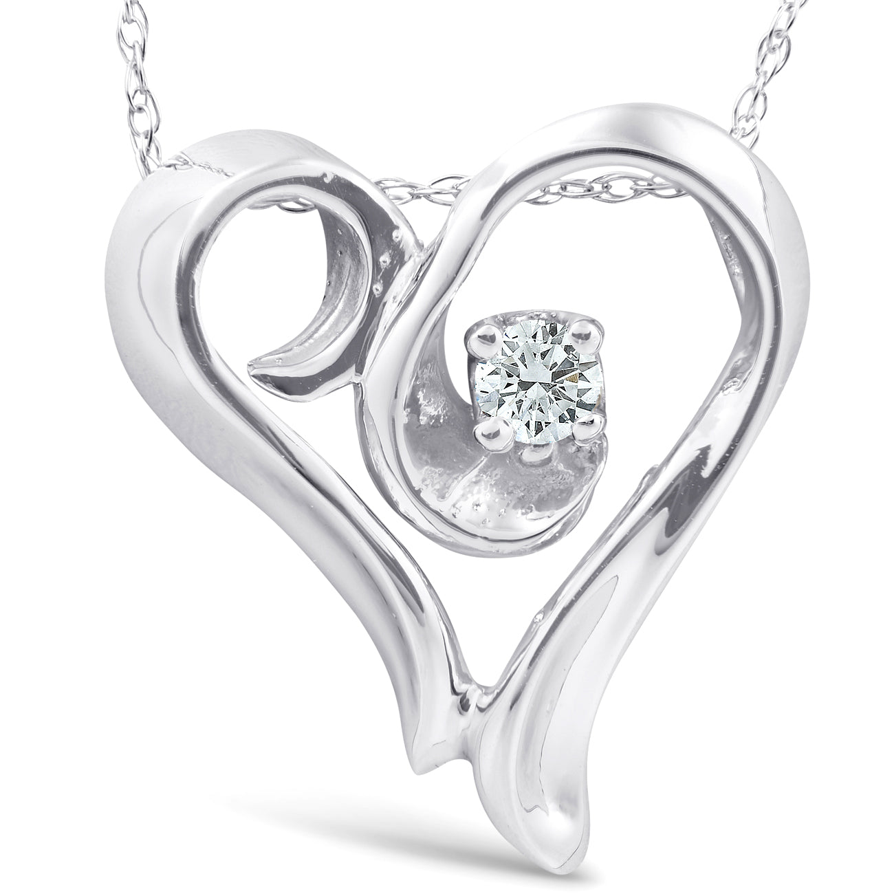 1/10Ct Solitaire Diamond Heart Pendant Necklace in White, Yellow, or Rose Gold
