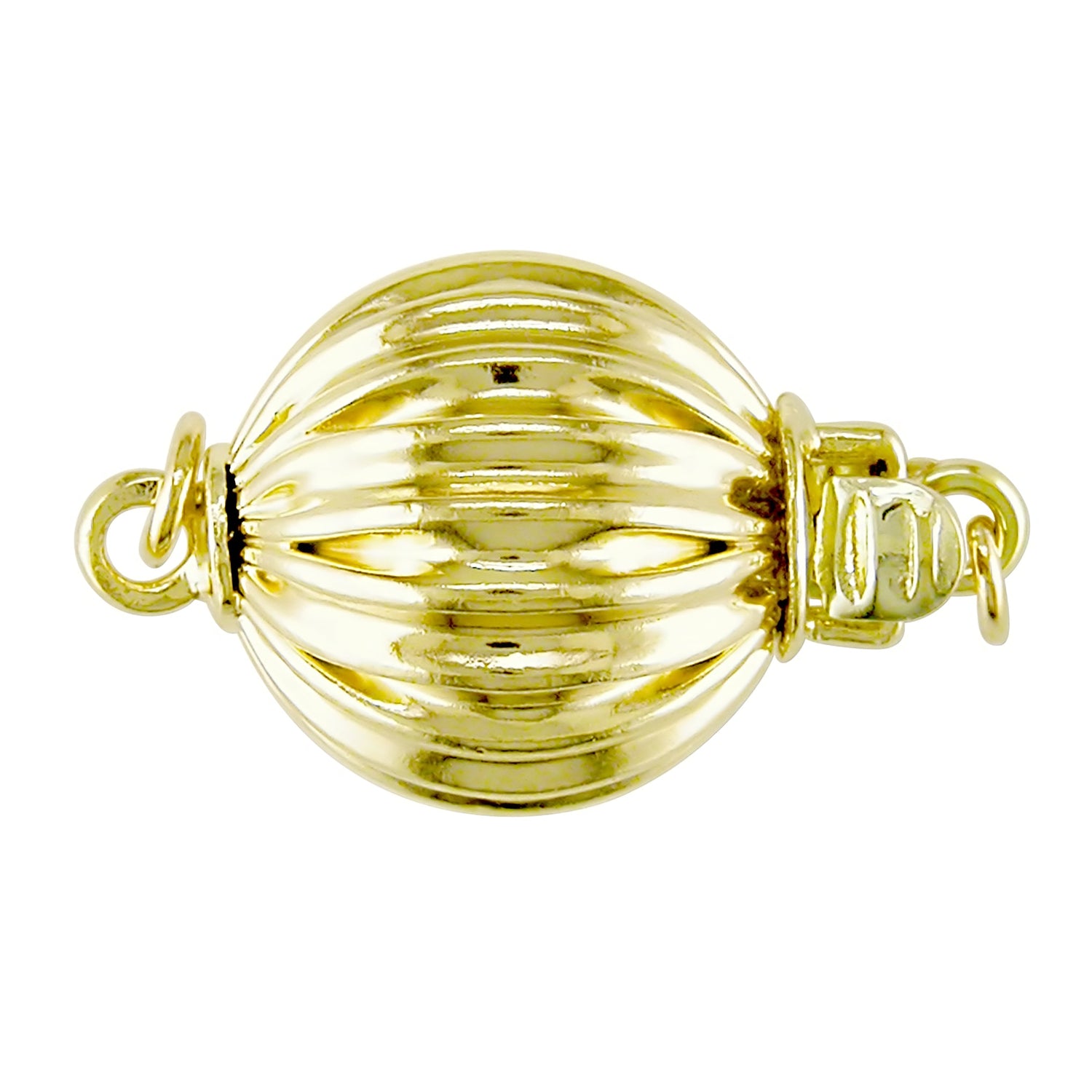 Features 10-12mm white South Sea cultured pearls with a corrugated 14k yellow gold ball clasp. 18 inches in length.