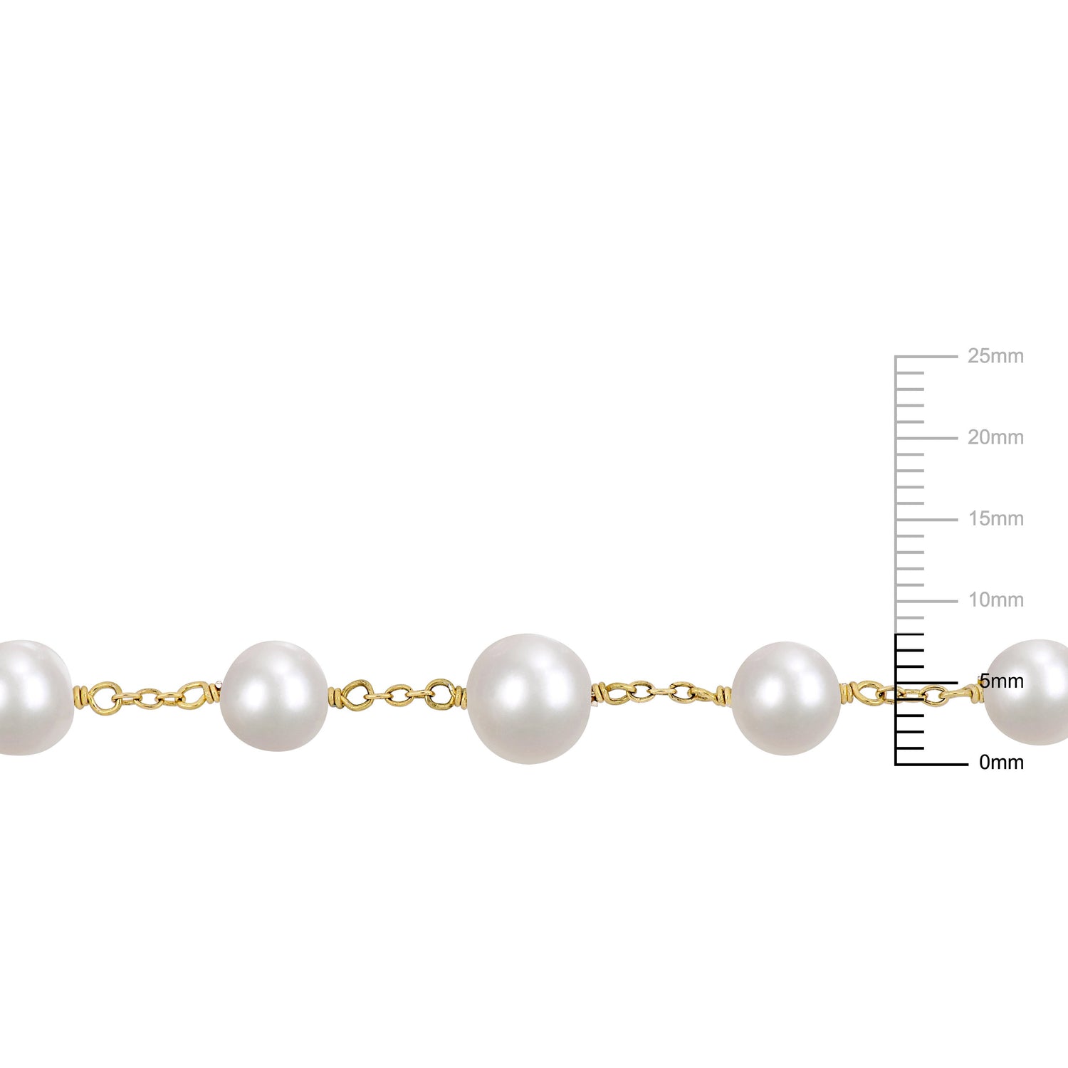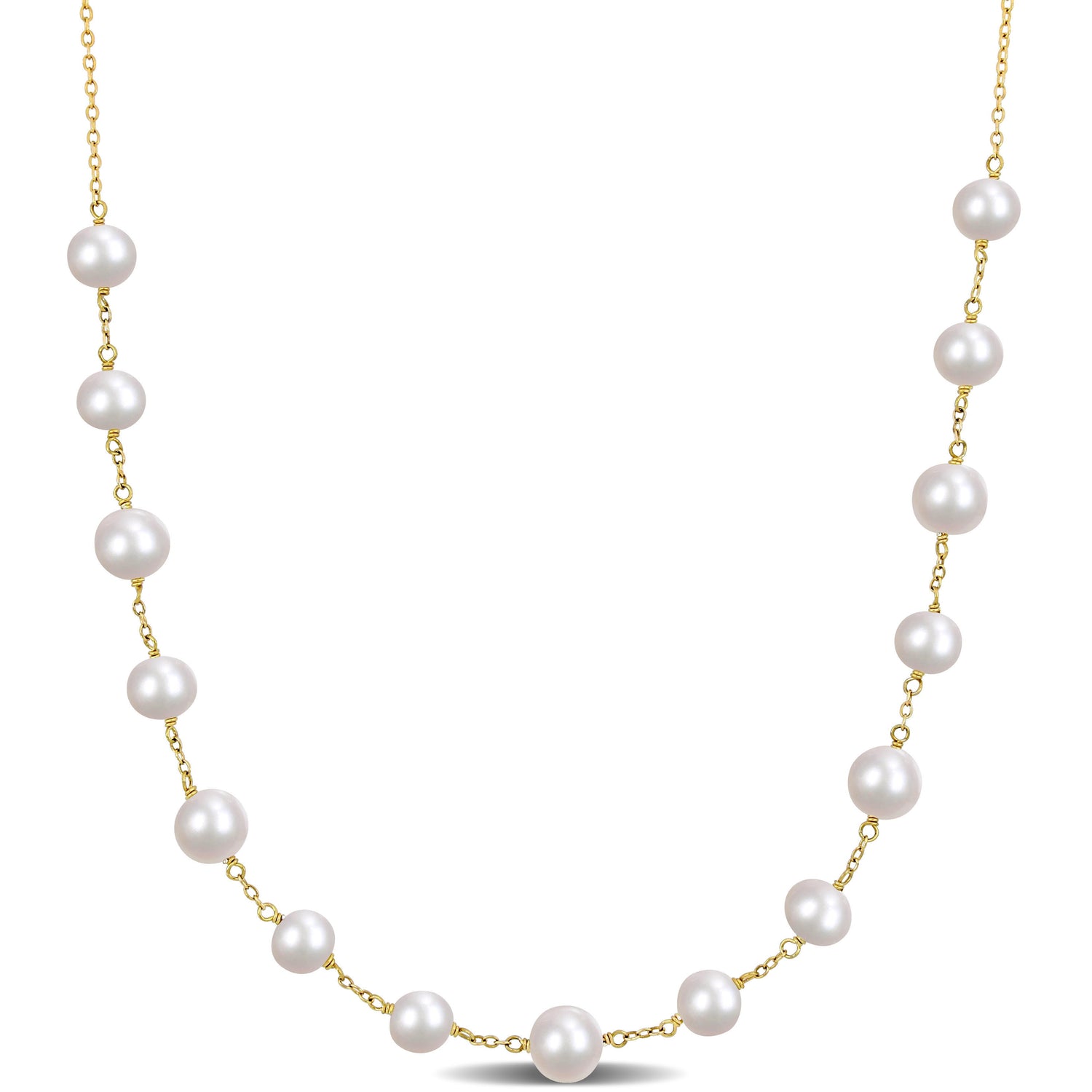 Crafted in yellow gold-plated sterling silver. Features five pearls (8–8.5mm) and ten pearls (6.5–7mm). Measures 18' long with spring ring clasp.