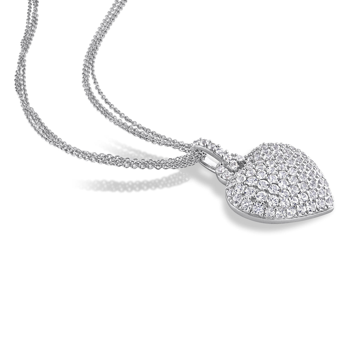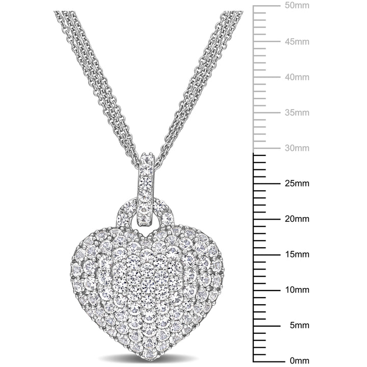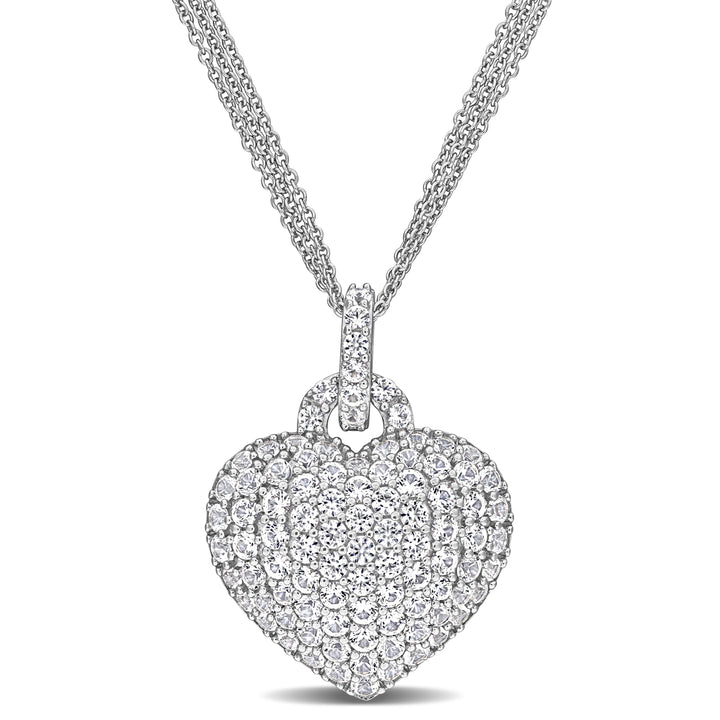 3 1/2 ct TW Created White Sapphire Heart Pendant with Triple-Strand Chain in Sterling Silver