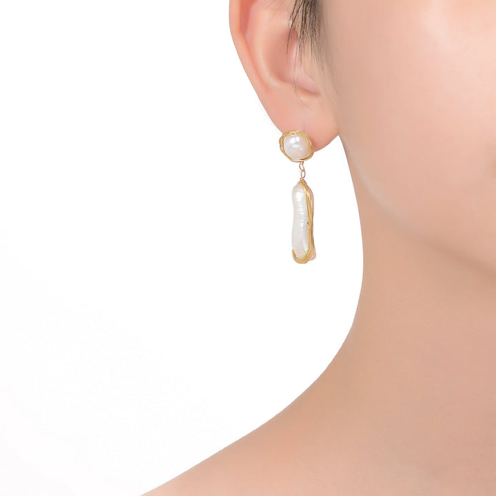Sterling Silver with 14k Gold Plated Genuine Freshwater Pearl Dangling Earrings