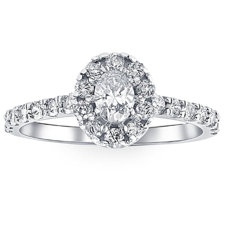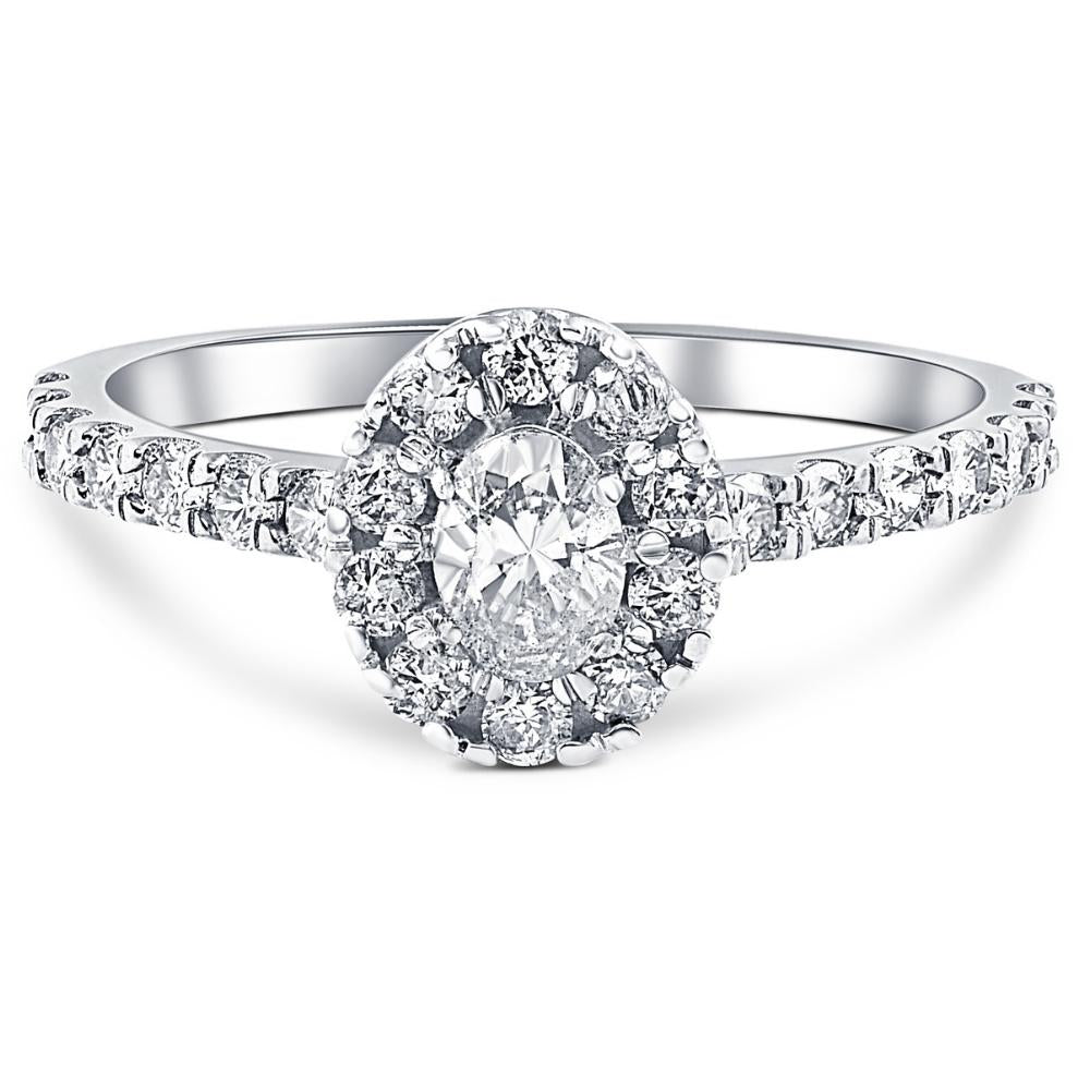 1Ct Oval Diamond Halo Engagement Ring in 10k White Gold