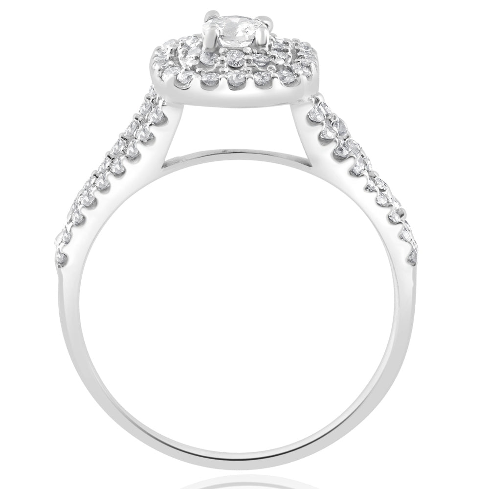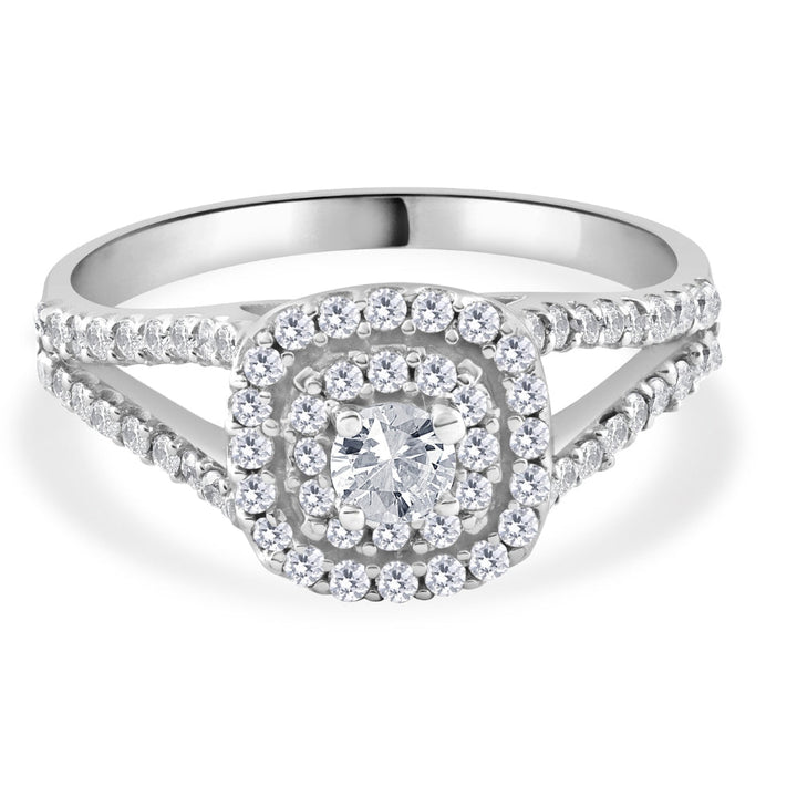 1Ct TW Diamond Double Cushion Halo Engagement Ring in 10k White Gold