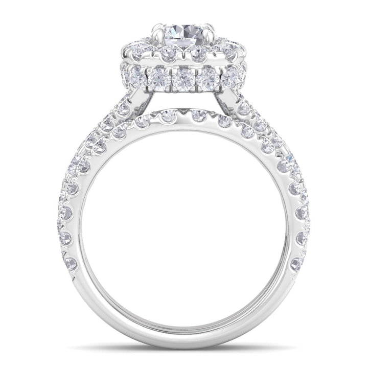 3 1/2 ct Cushion Halo Split Ring Diamond Engagement Set in White Yellow Rose Gold