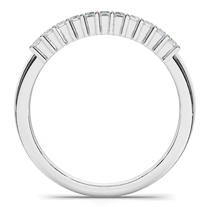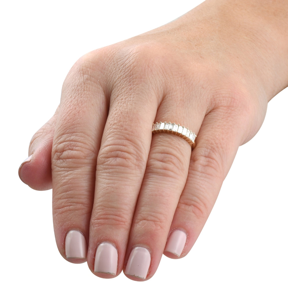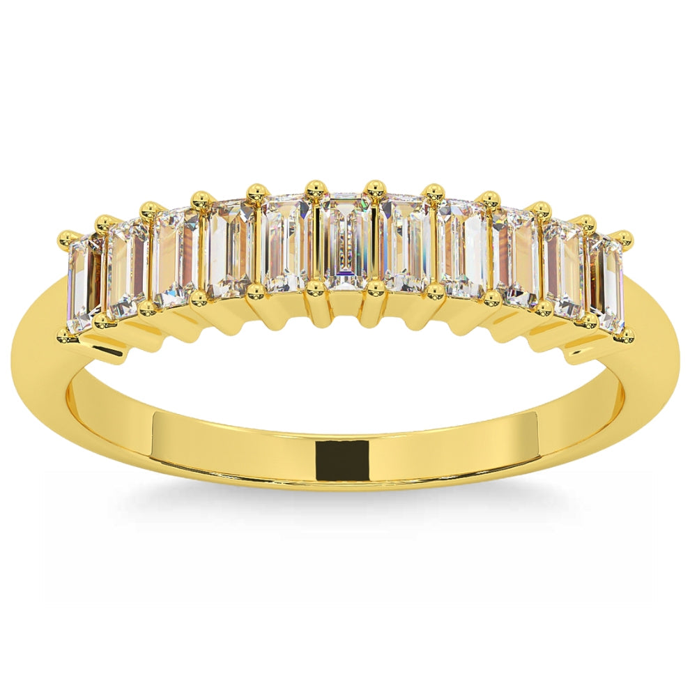 This 1/2Ct Baguette Diamond Wedding Anniversary Ring Stackable Band Gold Lab Grown by Pompeii3 features 11 baguette-cut lab-grown diamonds, prong set in solid polished 14k gold. Perfect for stacking or wearing alone, it makes a stylish anniversary gift or addition to an engagement ring.