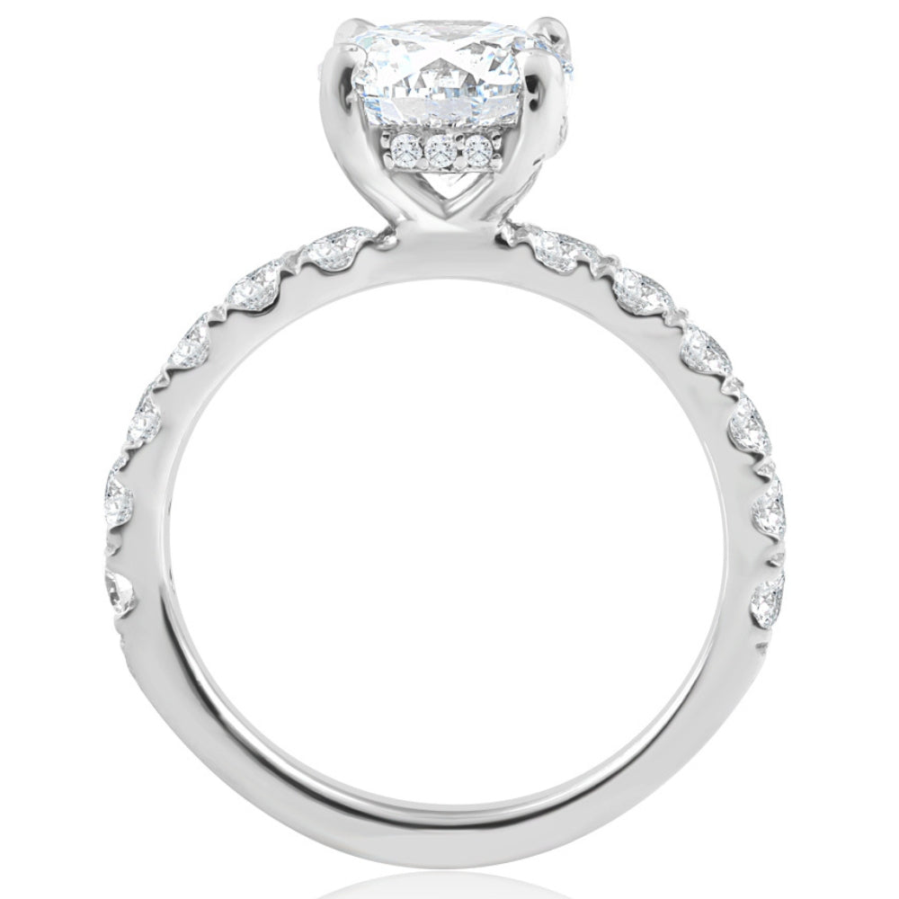 Set in solid 14k white gold with a 2ct lab-grown center diamond and 24 round-cut accent diamonds totaling 3 1/4ct TW.