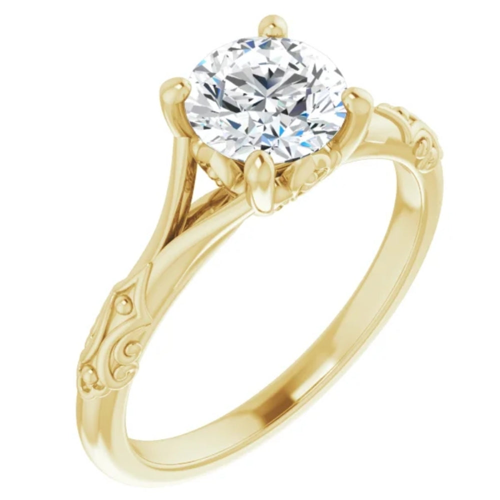 Handcrafted in solid 14k yellow gold with a 1ct round lab-grown diamond. SI clarity, G-H color.