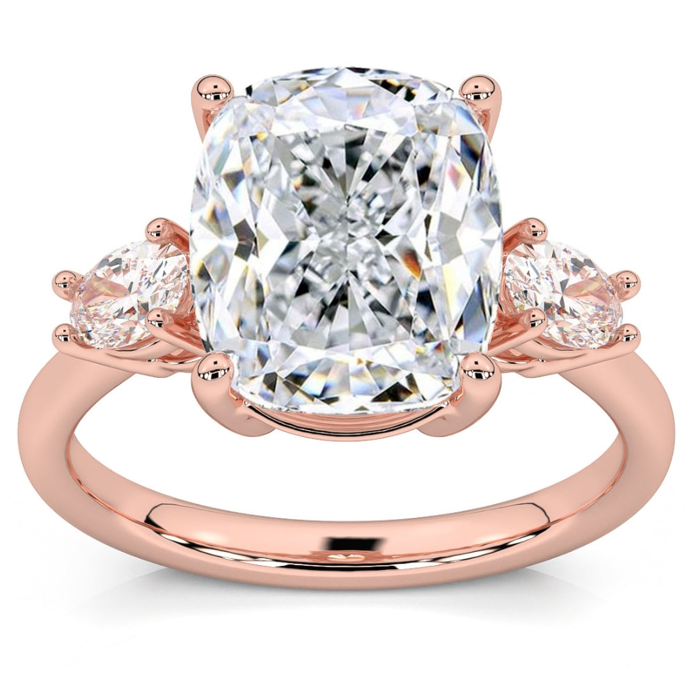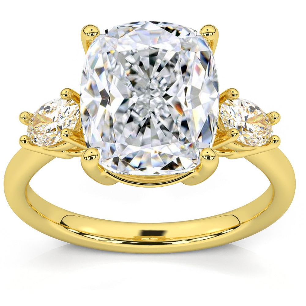 Certified 6 ct Cushion Cut 3-Stone Diamond Engagement Ring 14k Gold Lab Grown