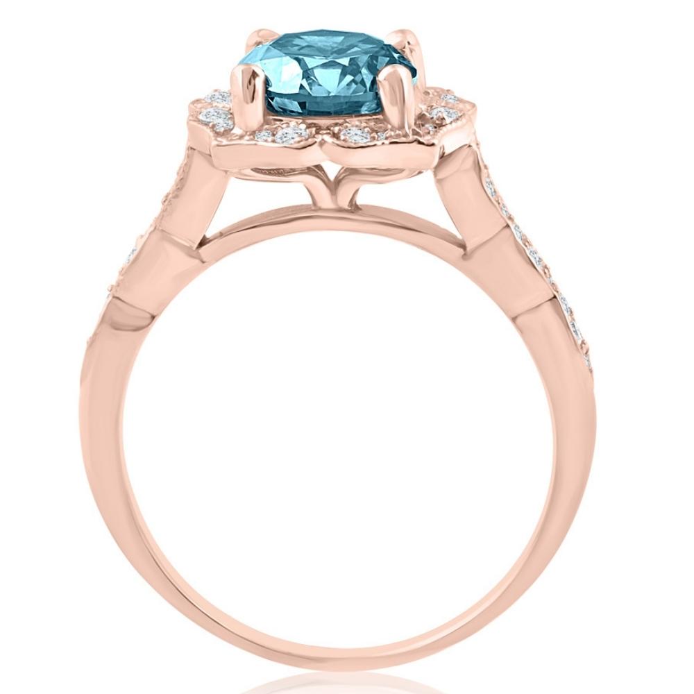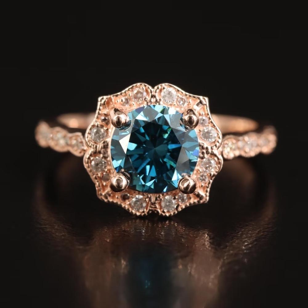 2 ct TW Blue & White Diamond Halo Vintage Engagement Ring 14k Rose Gold