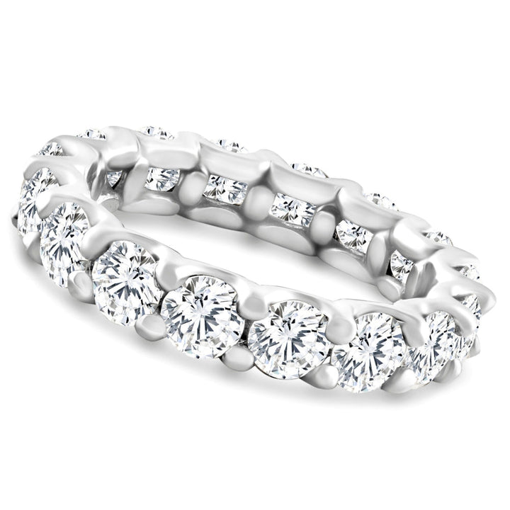 This 4Ct Lab Grown Diamond U Prong Eternity Band by Pompeii3 is an endless circle of brilliance. Featuring round-cut diamonds that encircle the entire band, this elegant eternity ring makes a bold statement of forever.
