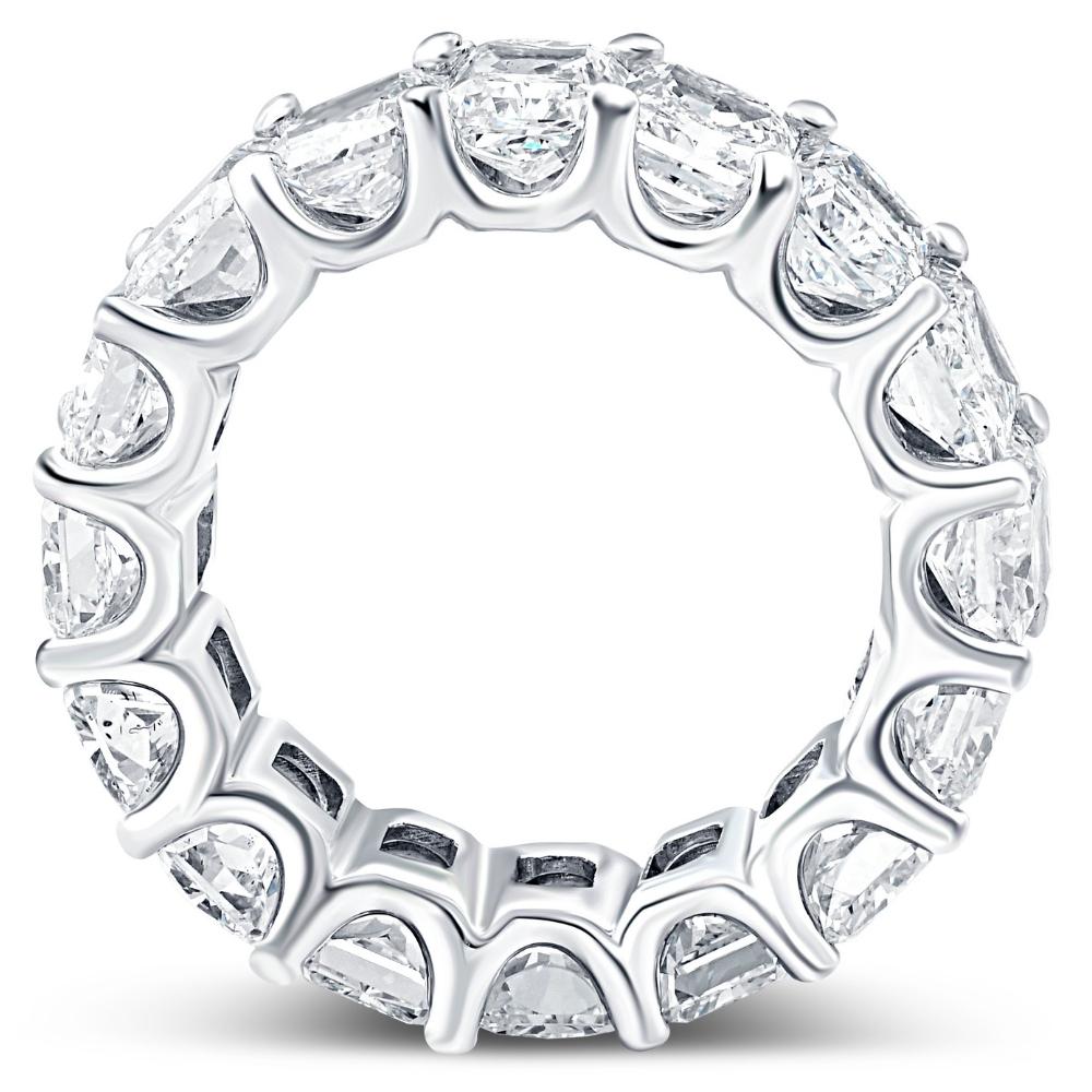 Made from solid platinum or 14K gold, set with radiant-cut lab-grown diamonds totaling 11 1/2ct. The diamonds are prong set in an eternity band.