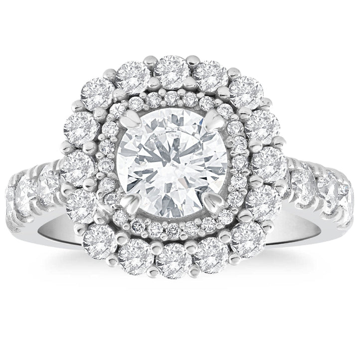 2 1/2 ct Cushion Halo Diamond Engagement Ring in 14k White or Yellow Gold