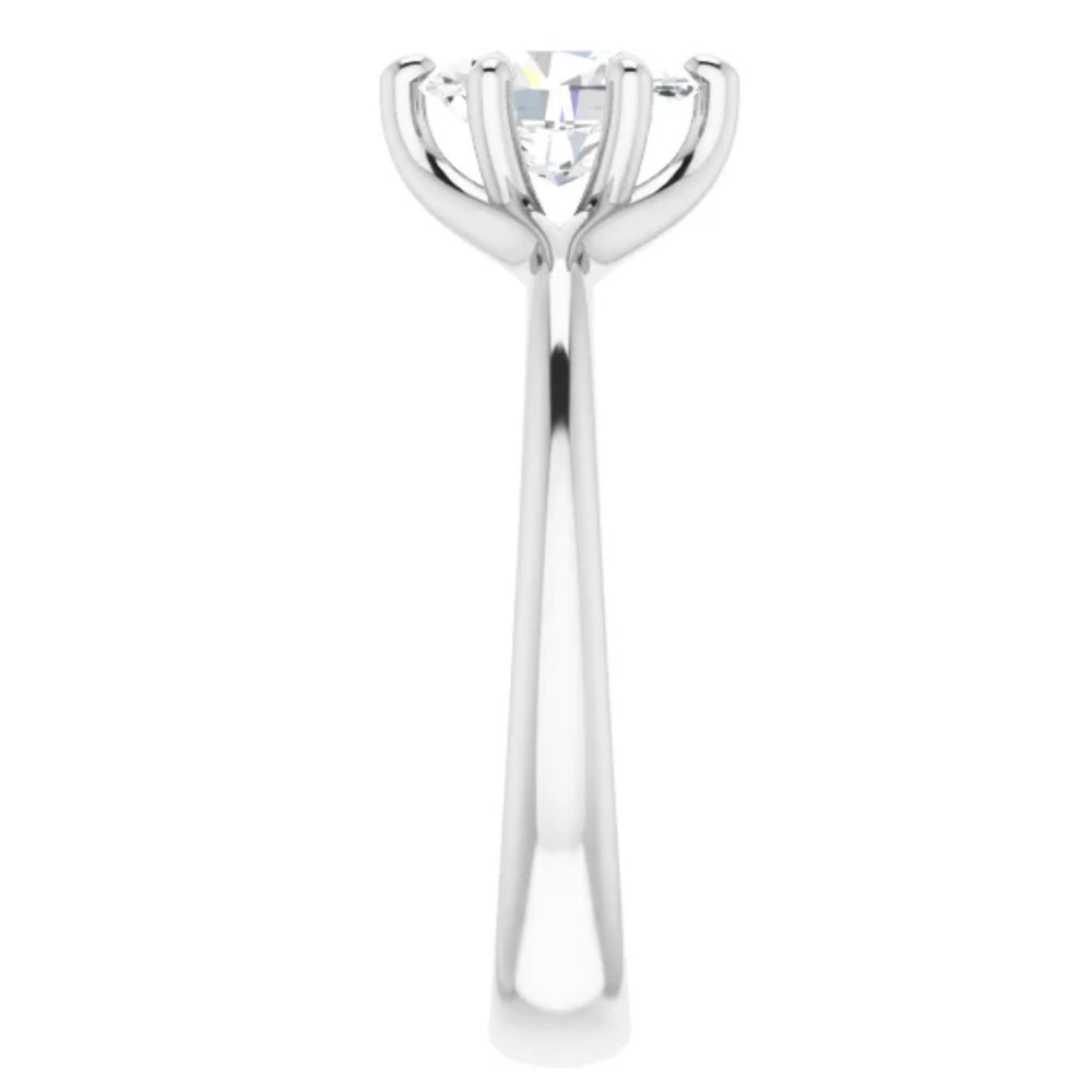 Handcrafted in solid 14k white or yellow gold with a lab-grown oval diamond. Total carat weight: 3/4ct. Diamond clarity: VS. Diamond color: H-I. Six-prong set with a high-polished finish.