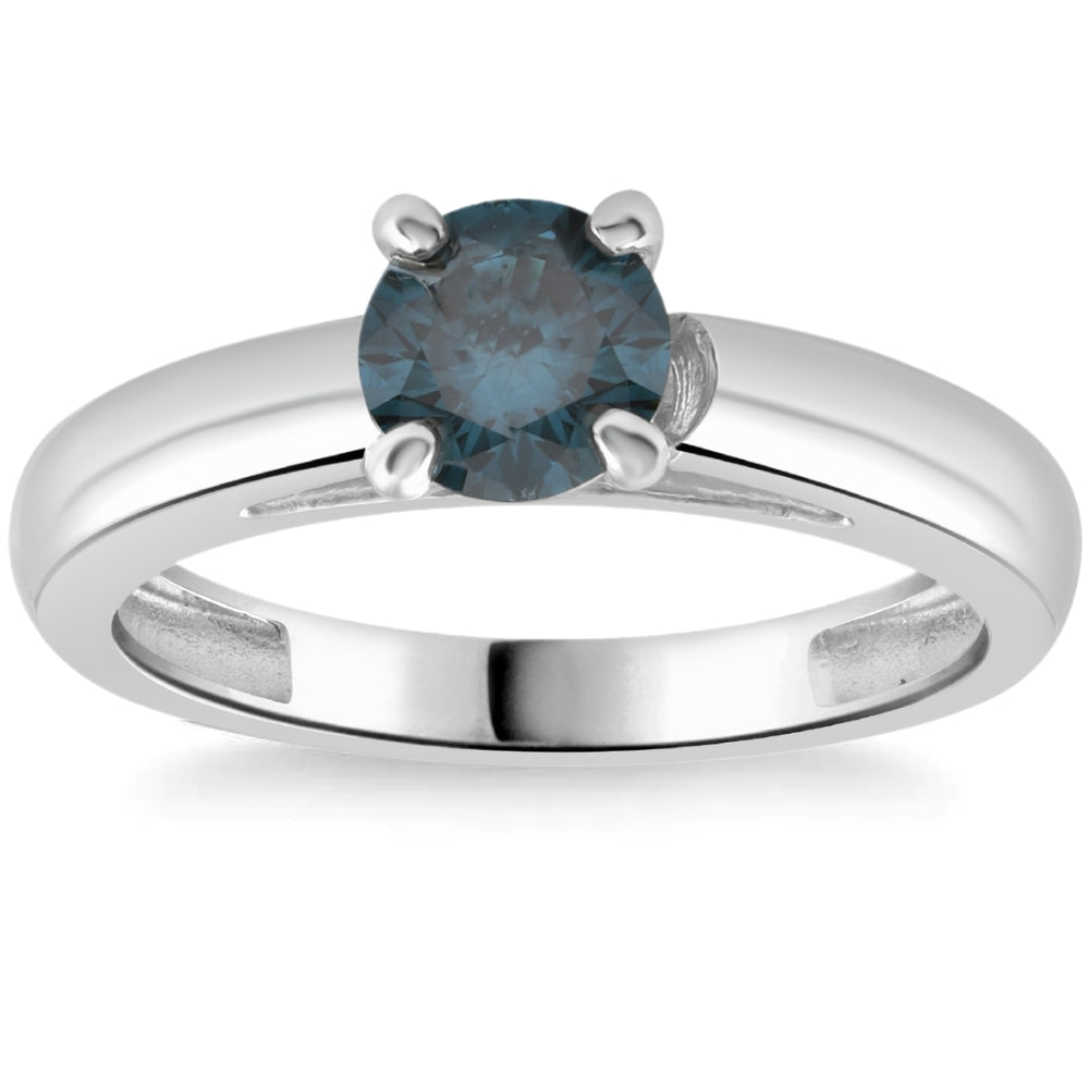 1/2 ct Solitaire Blue Diamond Engagement Ring Cathedral 14k White or Yellow Gold