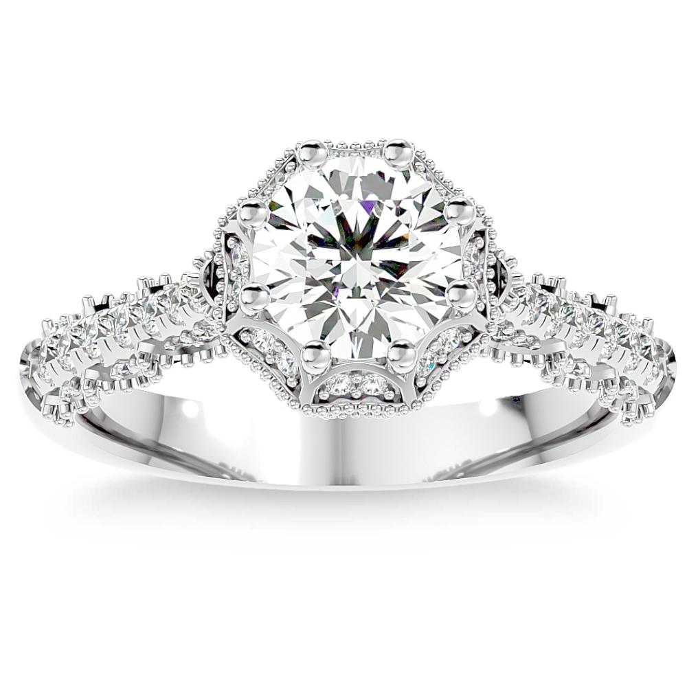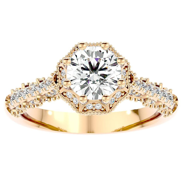 1 1/10Ct Vintage Diamond Moissanite Halo Engagement Ring White Yellow Rose Gold