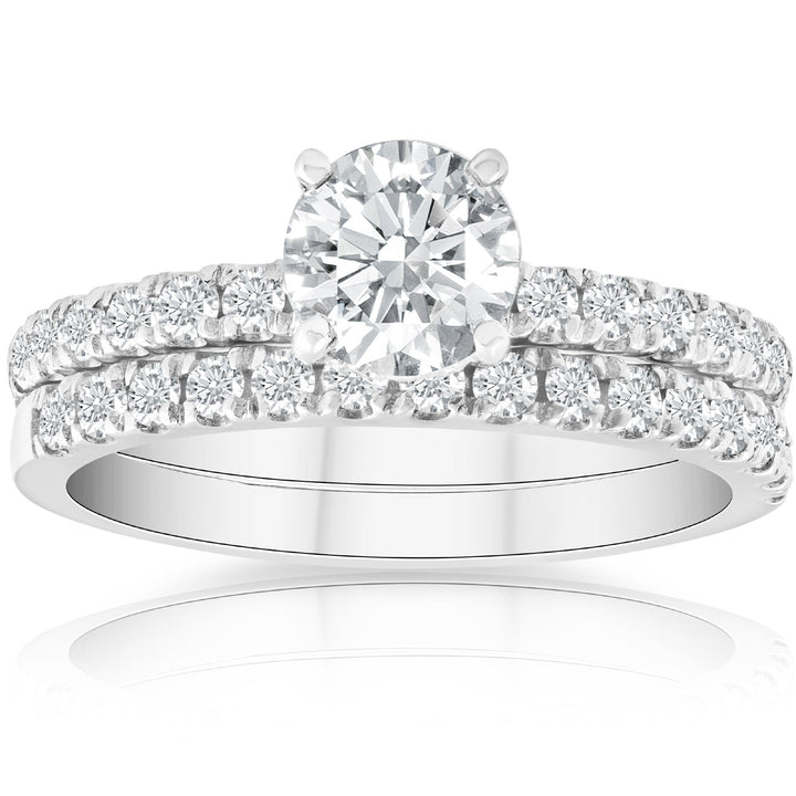 1 3/4 Ct Diamond Engagement Wedding Set 14k White Gold