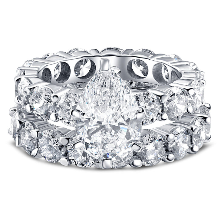 Certified 13Ct Pear Shape Diamond Eternity Wedding Ring Set 14k Gold Lab Grown