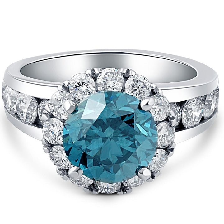 5Ct Blue Diamond Halo Engagement Ring in White Gold Lab Grown