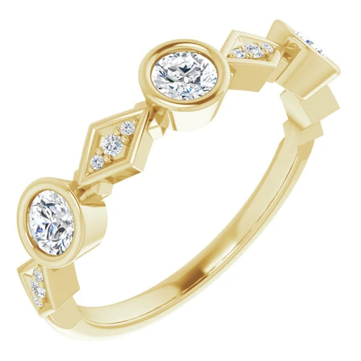 This 3/4ct Diamond Women's Wedding Ring Anniversary Band in White or Yellow Gold by Pompeii3 features round-cut genuine diamonds set in solid gold, making it a perfect addition to any engagement ring or as a standalone piece for anniversaries.