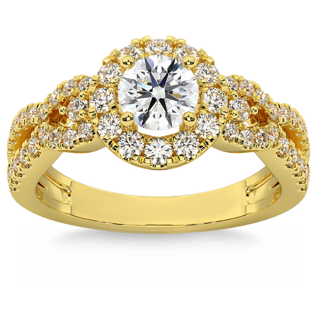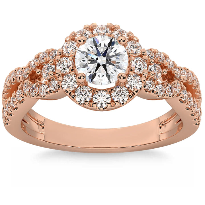 1 1/2 ct Diamond Engagement Ring Halo Twist Band 14k Gold Lab Grown