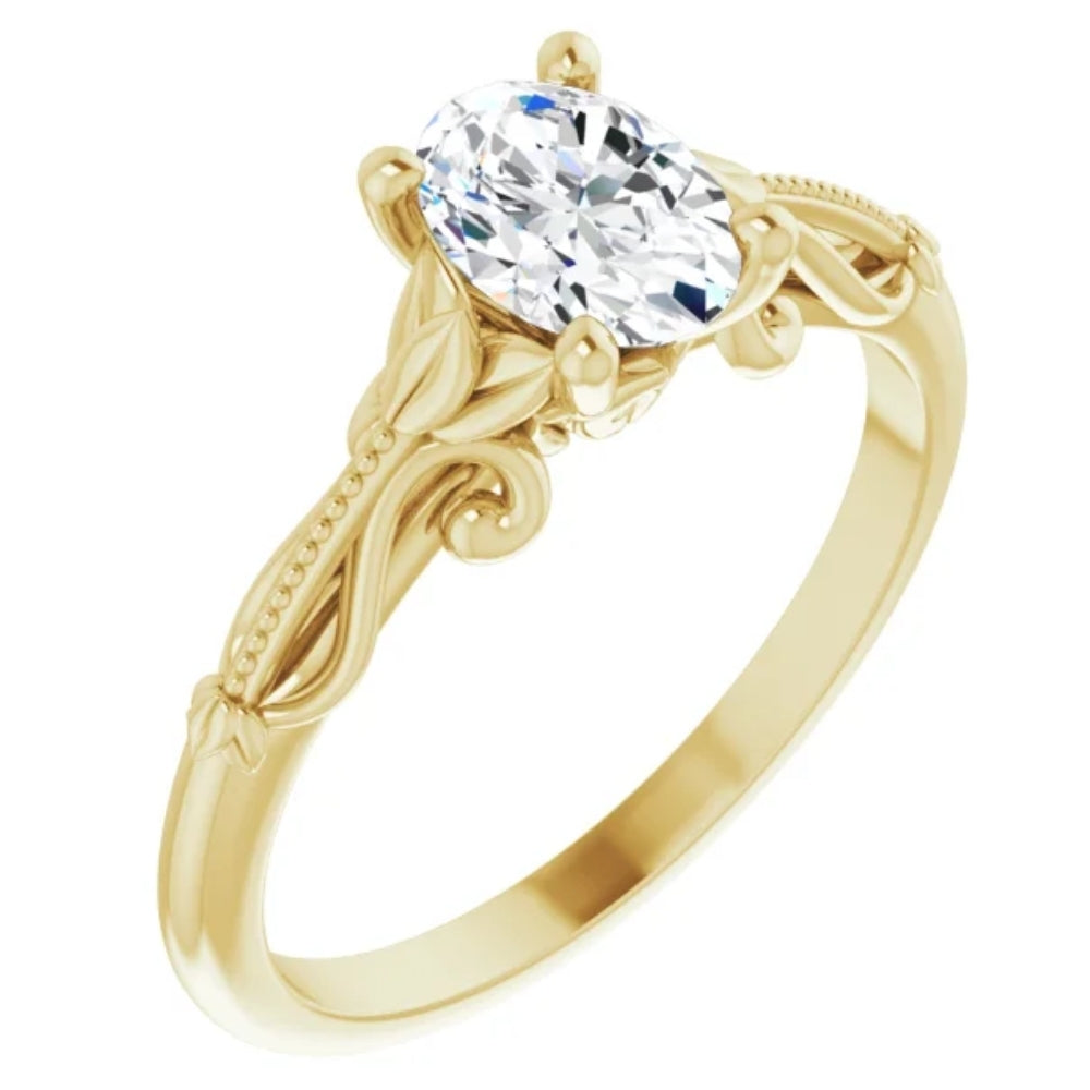 1 Ct Oval Solitaire Diamond Vintage Engagement Ring in Gold Lab Grown