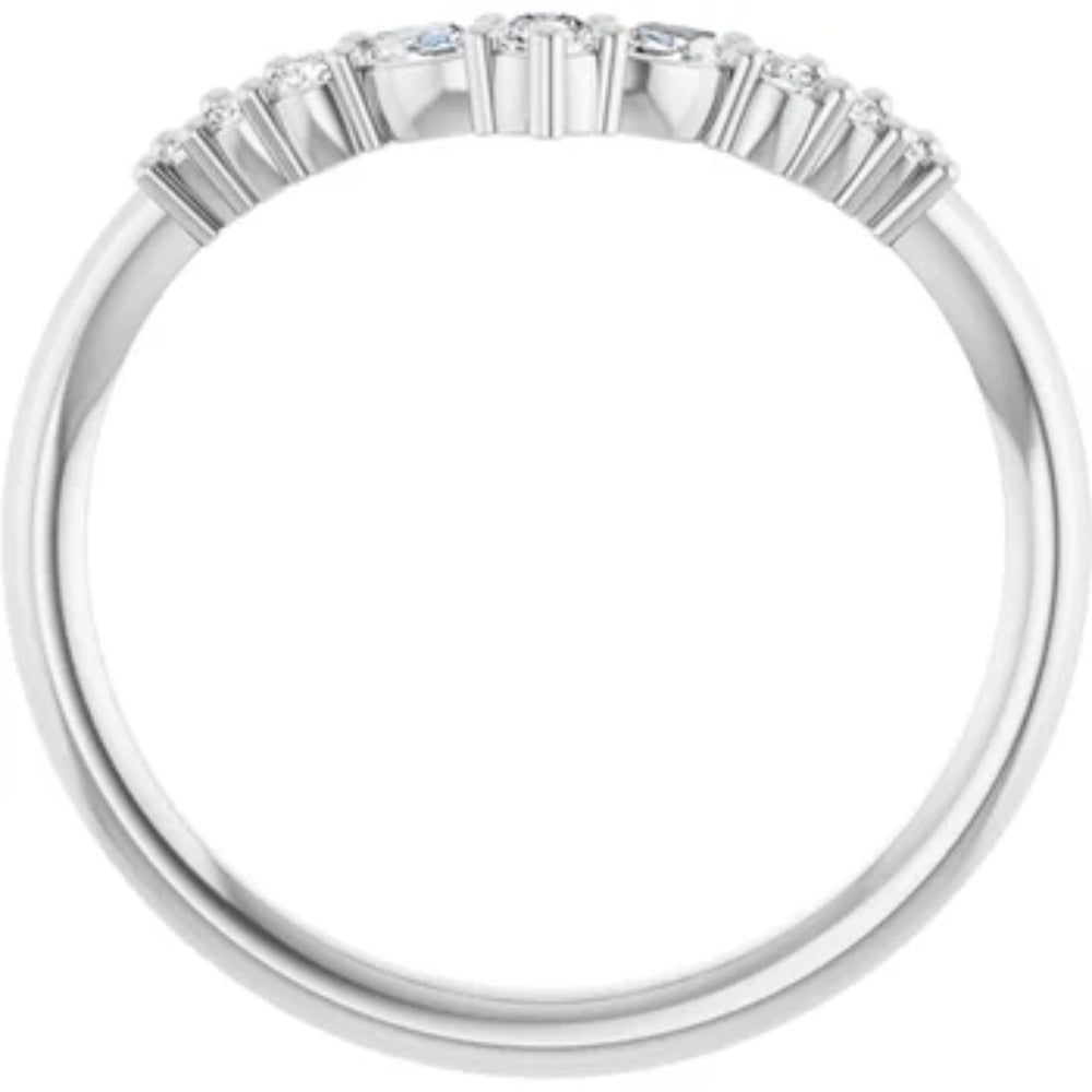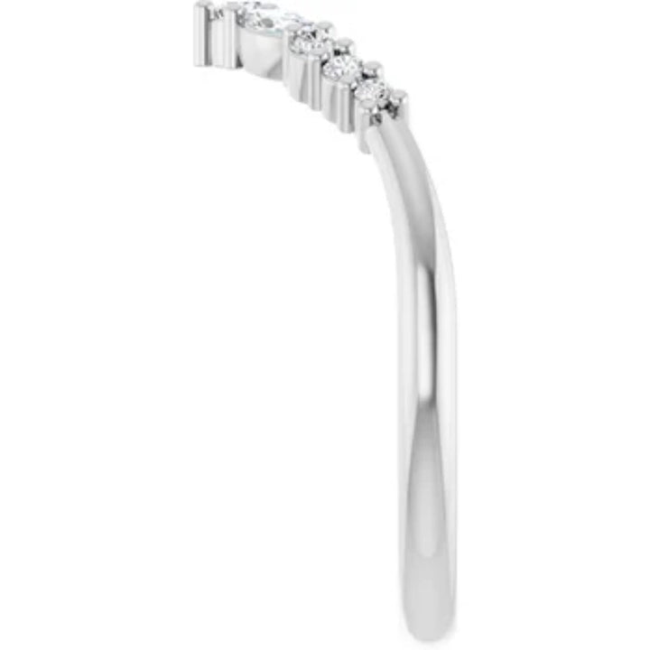 This 1/4Ct Marquise Cut Wedding Ring Anniversary Band in 14k Gold Lab Grown by Pompeii3 features two marquise-cut lab-grown diamonds, prong set in solid 14k gold. The sleek design makes it perfect for stacking with engagement rings or as a standalone anniversary band.