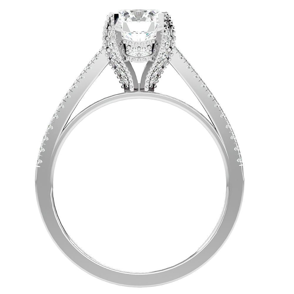 This 1 1/10Ct Moissanite & Diamond Multi-Row Engagement Ring by Pompeii3 is a striking design of layered sparkle. A 6mm round moissanite is surrounded by 78 brilliant diamonds in a multi-row setting, perfect for modern glamour.