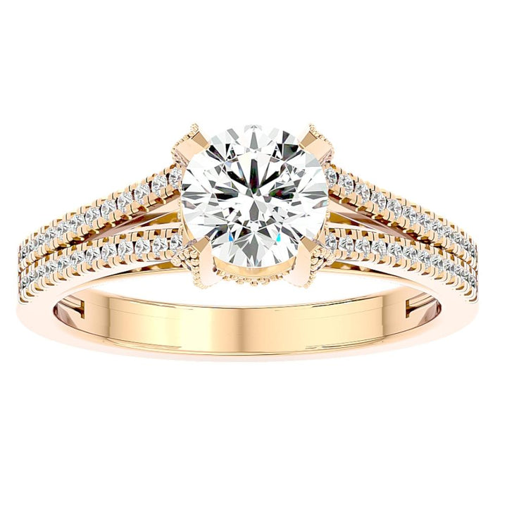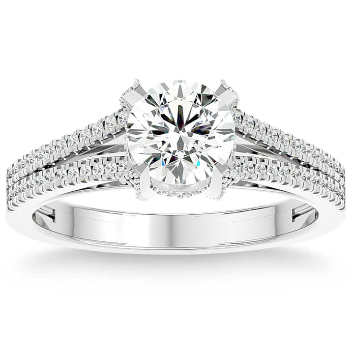 1 1/10Ct Moissanite & Diamond Multi Row Engagement Ring White Yellow Rose Gold