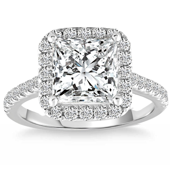 Certified 3.80Ct Princess Cut Halo Diamond Engagement Ring 14k White Gold