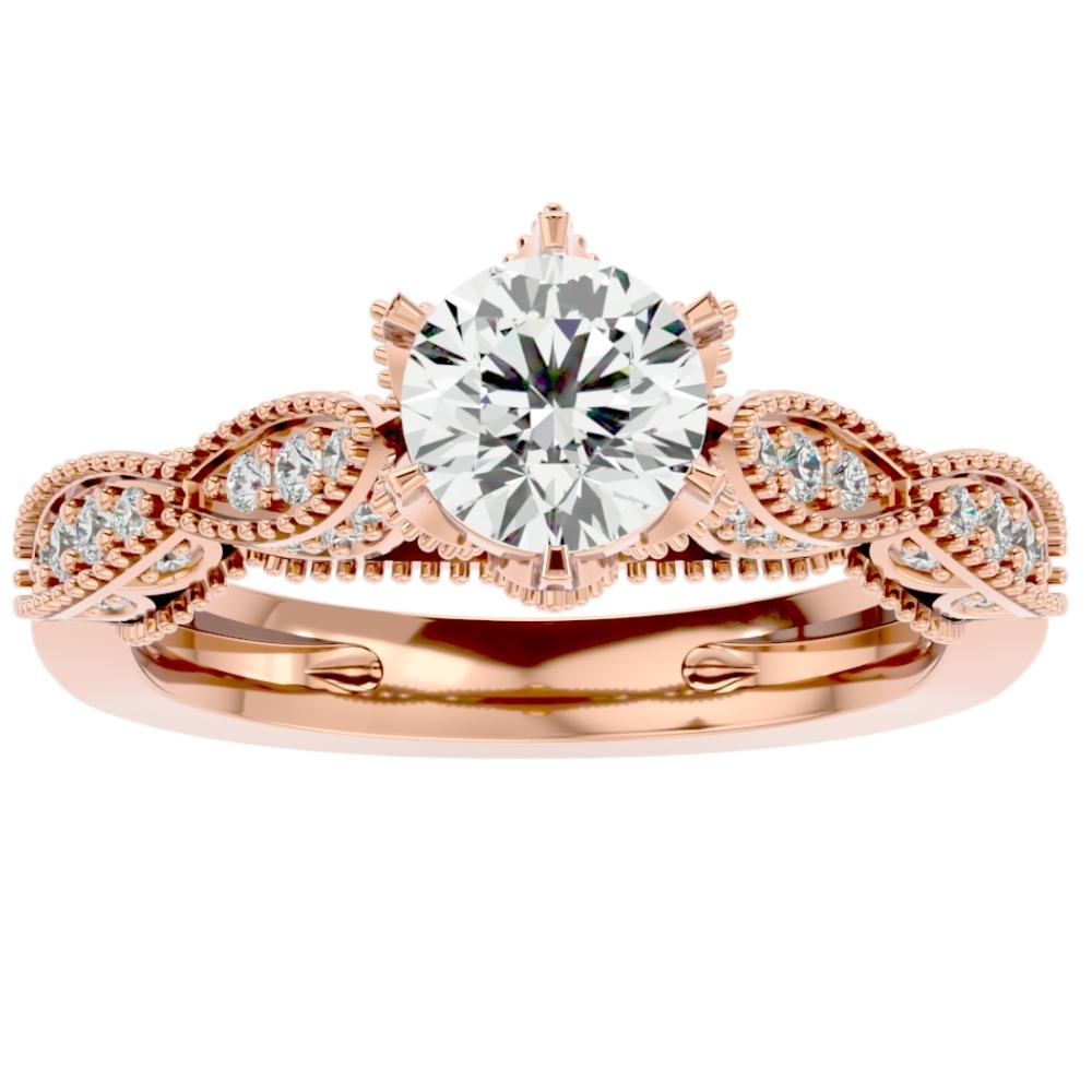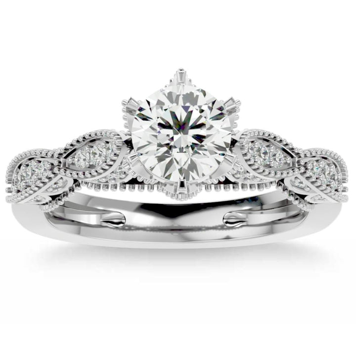 1 3/8 ct Vintage Moissanite & Diamond Engagement Ring White, Yellow, Rose Gold