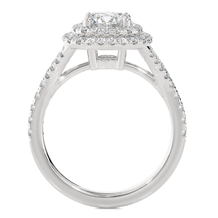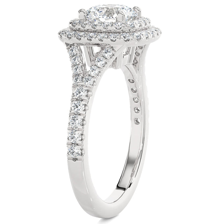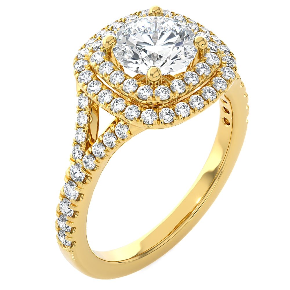 The Certified 2 1/5Ct Cushion Halo Diamond Engagement Ring by Pompeii3 is designed to impress. Centered with a 1 1/2ct certified round cut diamond surrounded by sparkling accents, it’s set in solid 14k gold polished to perfection.