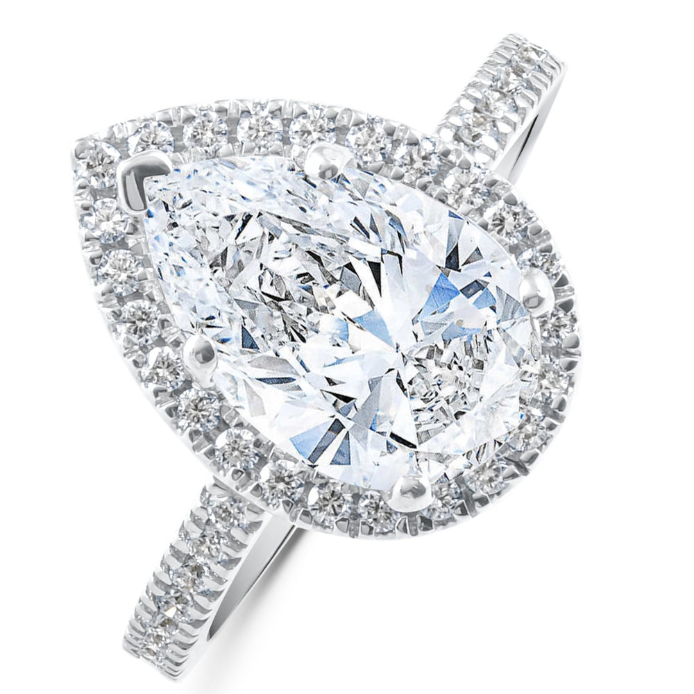 3 5/8 ct Pear Shape Halo Diamond Engagement Ring Lab Grown White or Yellow Gold