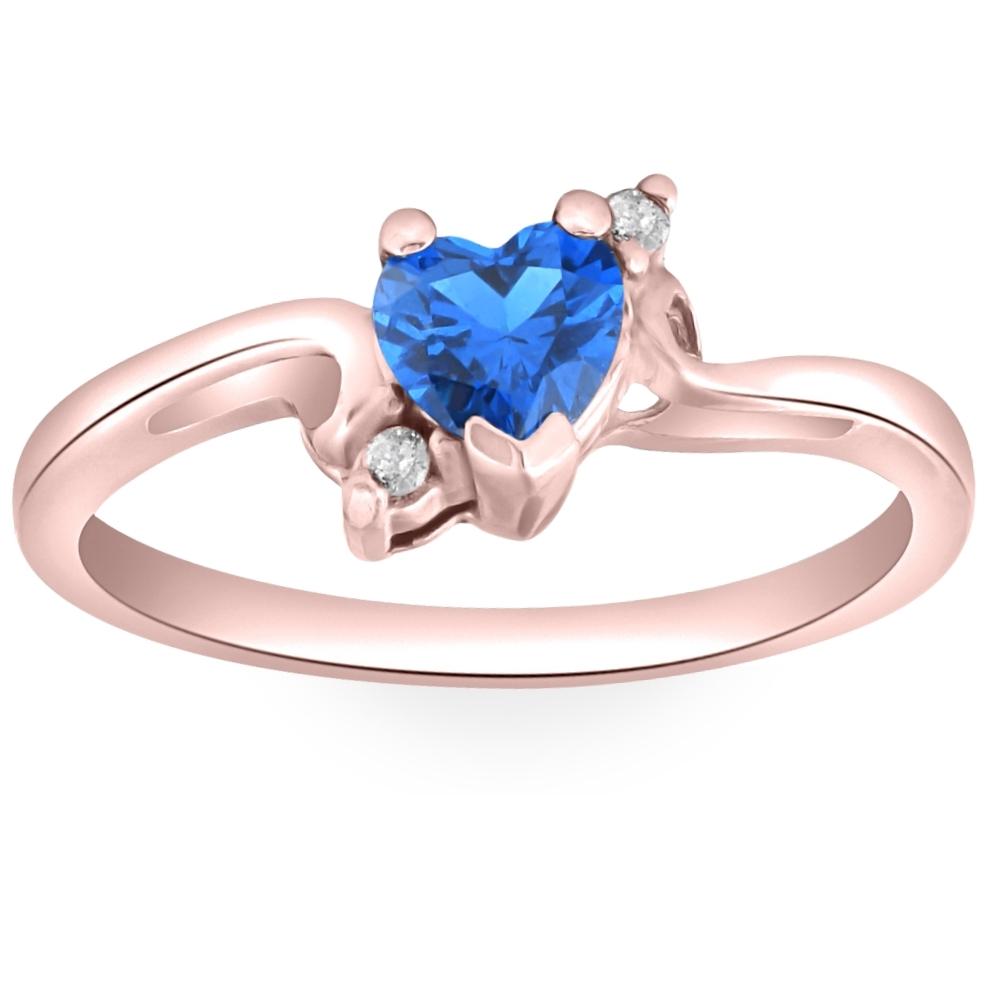 1/3Ct Heart Shaped Blue Sapphire & Diamond Ring in White, Yellow, or Rose Gold