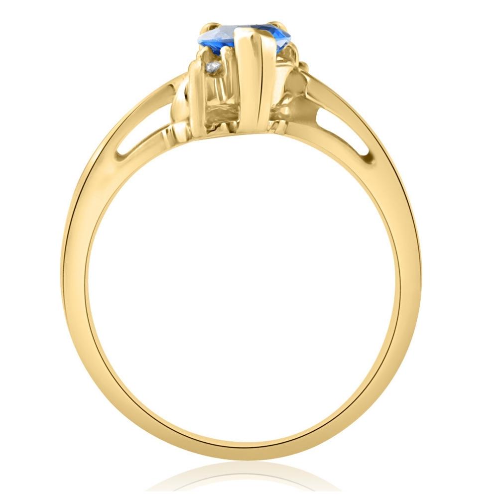 Set in solid 10K white, yellow, or rose gold, featuring a 4mm heart-shaped blue sapphire and 2 round natural accent diamonds. Diamond clarity I2-I3, color G-H.