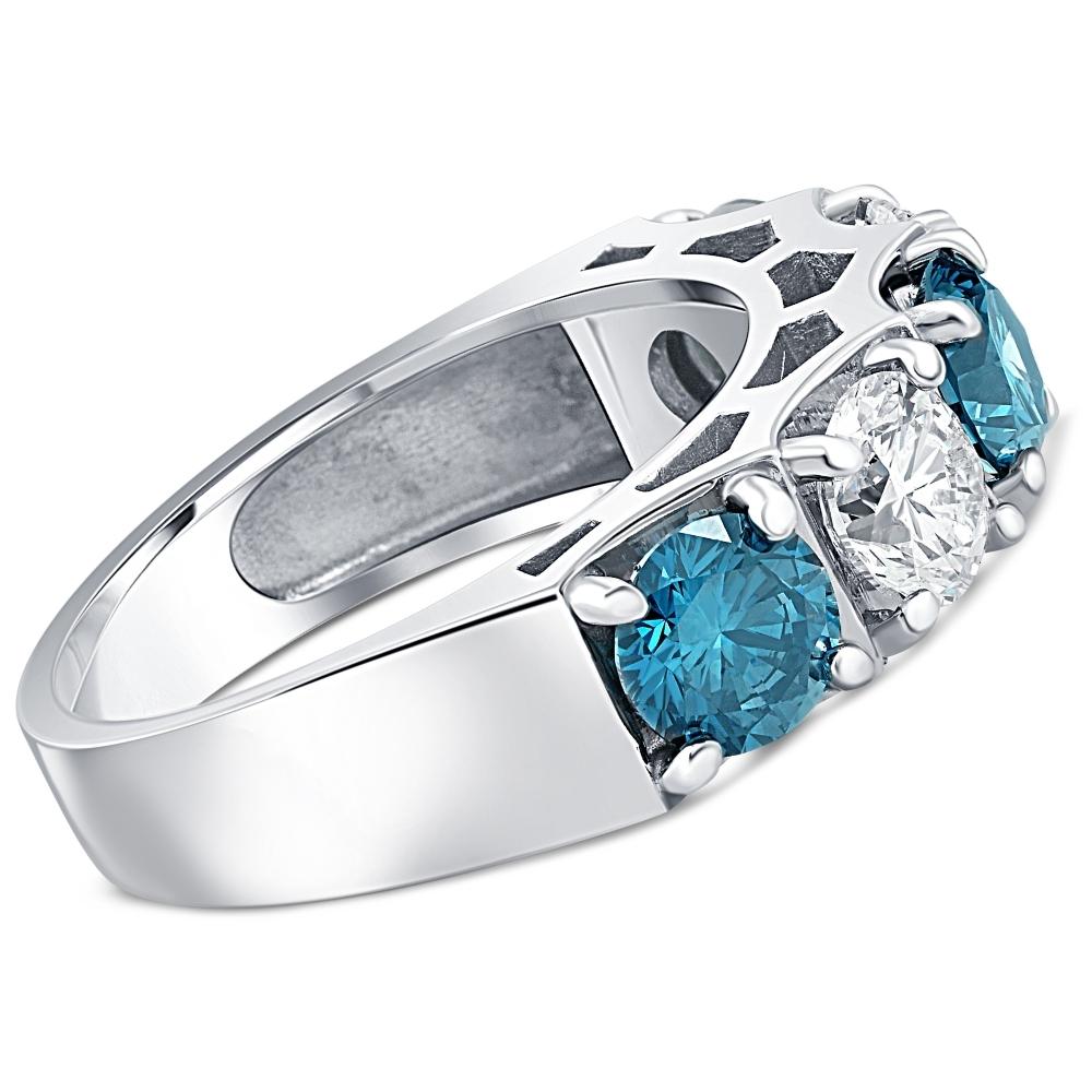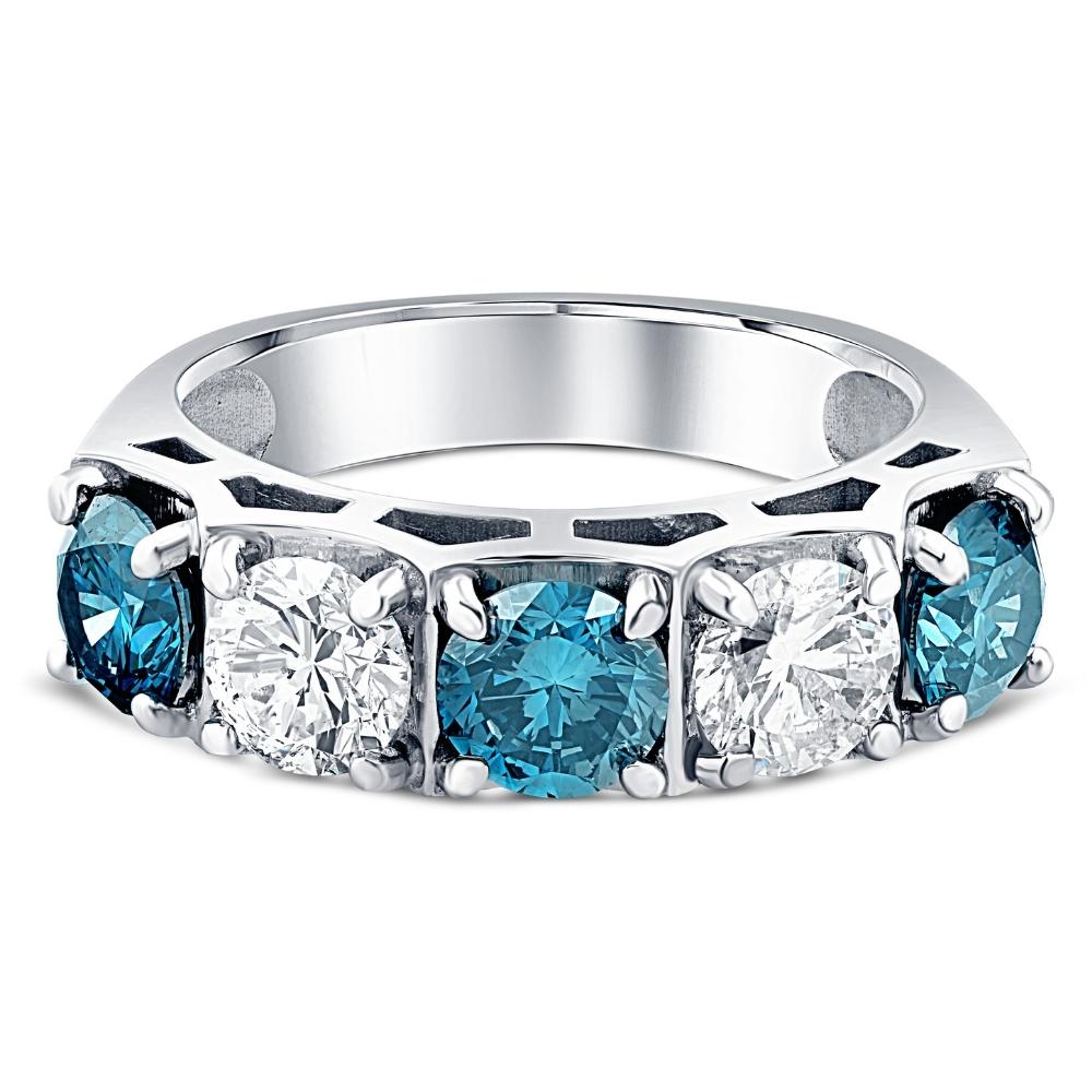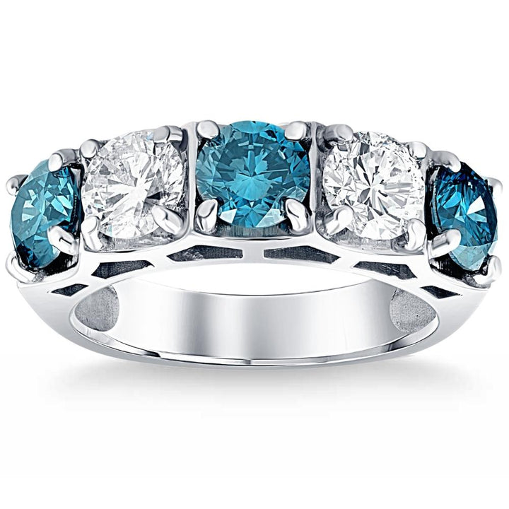 3 1/4 ct Blue Diamond Wedding Ring White Gold Lab Grown Anniversary 5-Stone Band