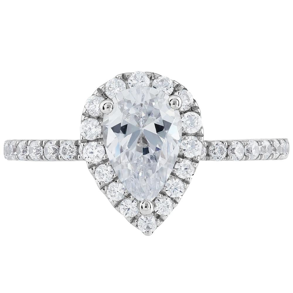 1 1/3 Ct TW Pear Shaped Halo Diamond Engagement Ring 14k White Gold Lab Grown