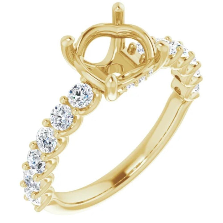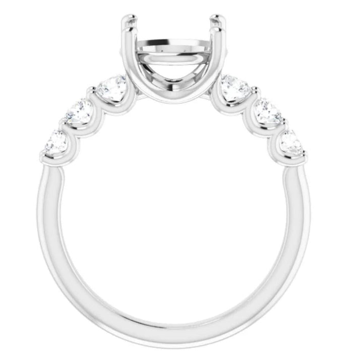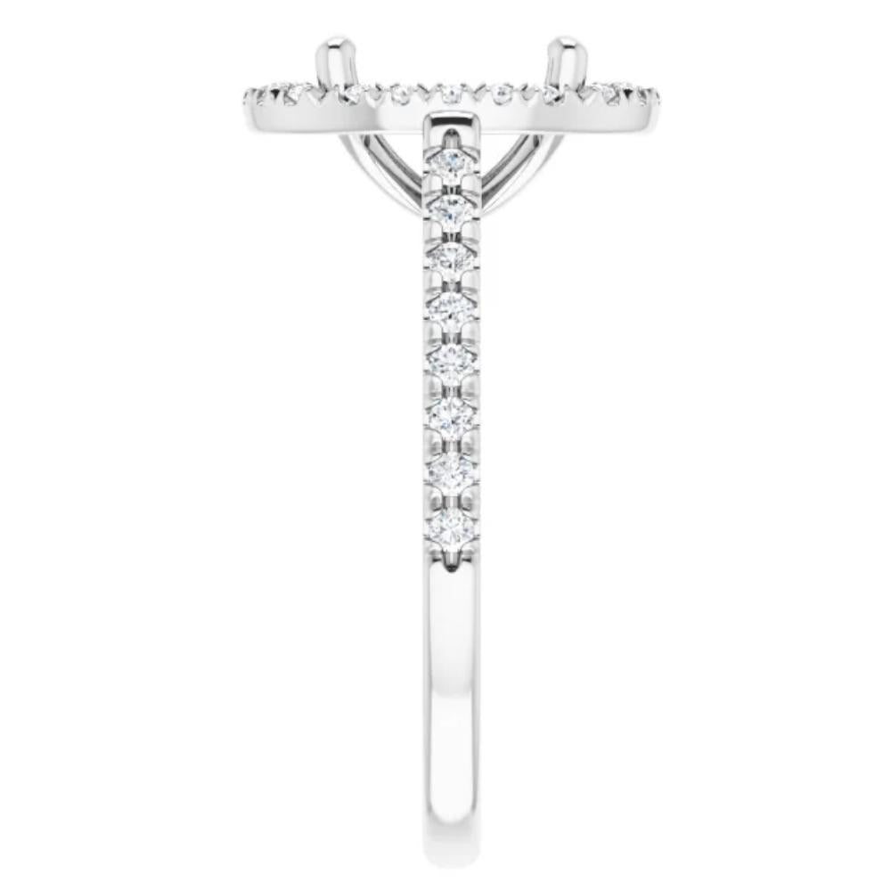 This Lea Lab Grown Diamond Accent Ring Setting by Pompeii3 features 18 round brilliant cut lab-grown accent diamonds, prong-set in a high-polished common prong halo style mounting. The clean and classic design of this ring enhances the brilliance of the diamonds, making it perfect for any occasion. Whether as a standalone piece or part of a stack, this ring adds understated elegance to your collection.