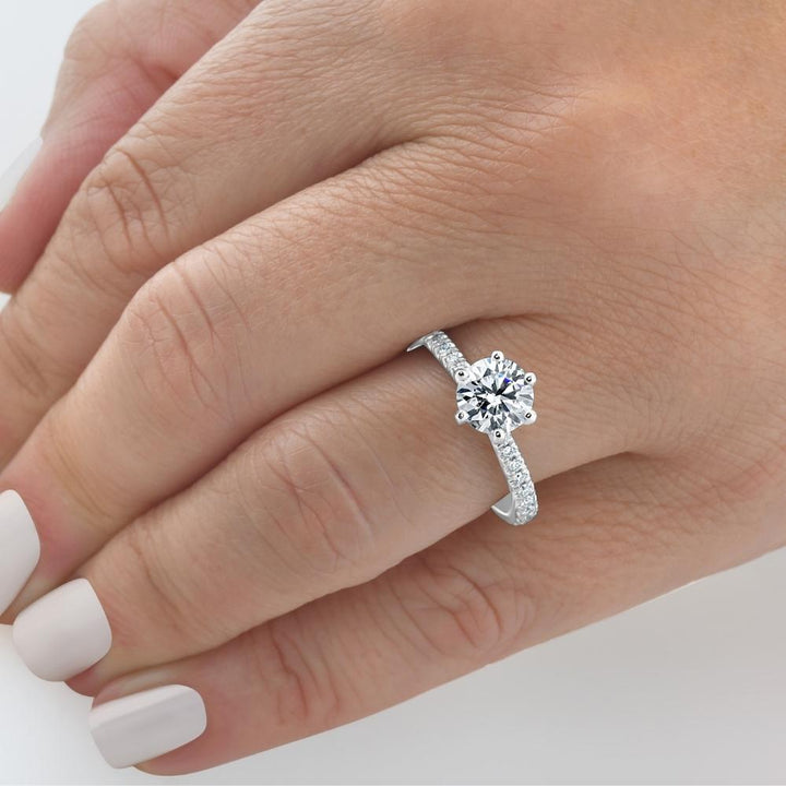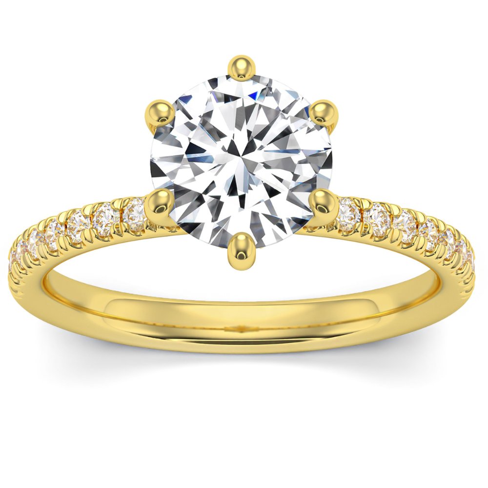 2 ct Round Cut Moissanite & Diamond Ring in 14k Gold With Side Halo