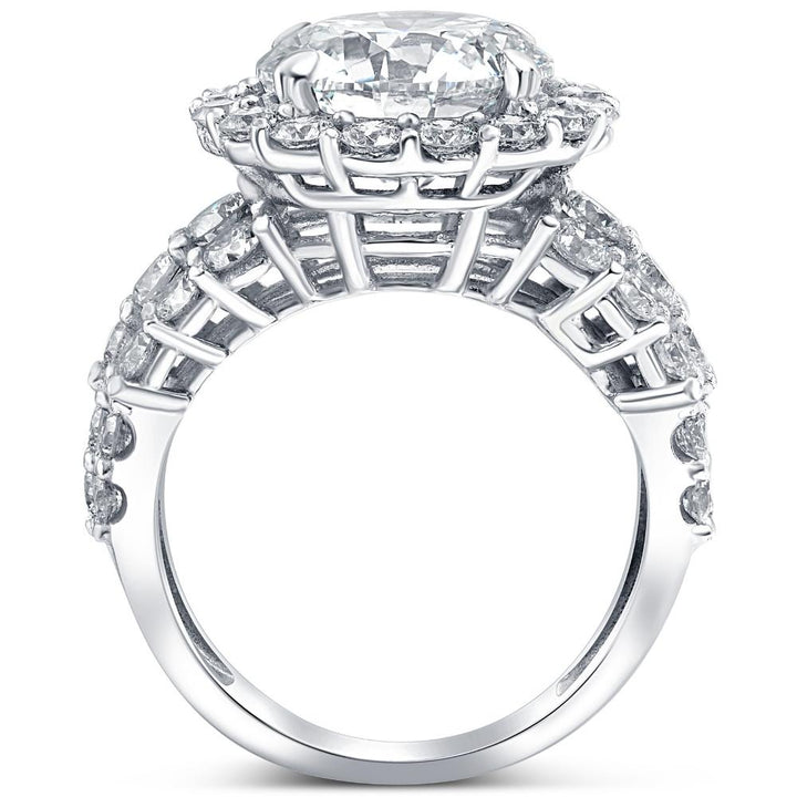 6 1/2 ct Diamond Halo Engagement Ring Lab Grown in 14k White or Yellow Gold