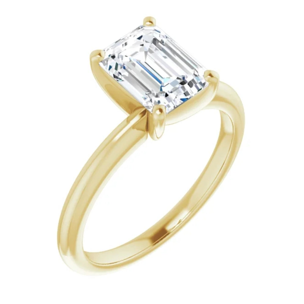 2 ct Emerald Solitaire Moissanite Engagement Ring in White Yellow or Rose Gold