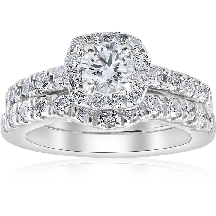 1 1/10Ct TDW Cushion Halo Engagement Wedding Ring Set 14k White Gold Lab Grown