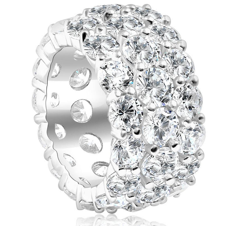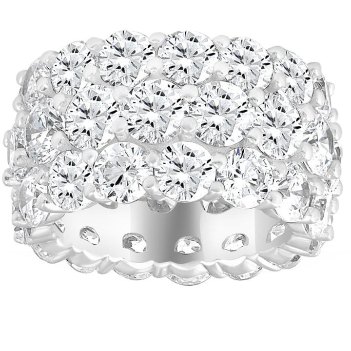16 Ct Lab Grown Diamond 3-Row Eternity Wedding Ring in 10k White or Yellow Gold